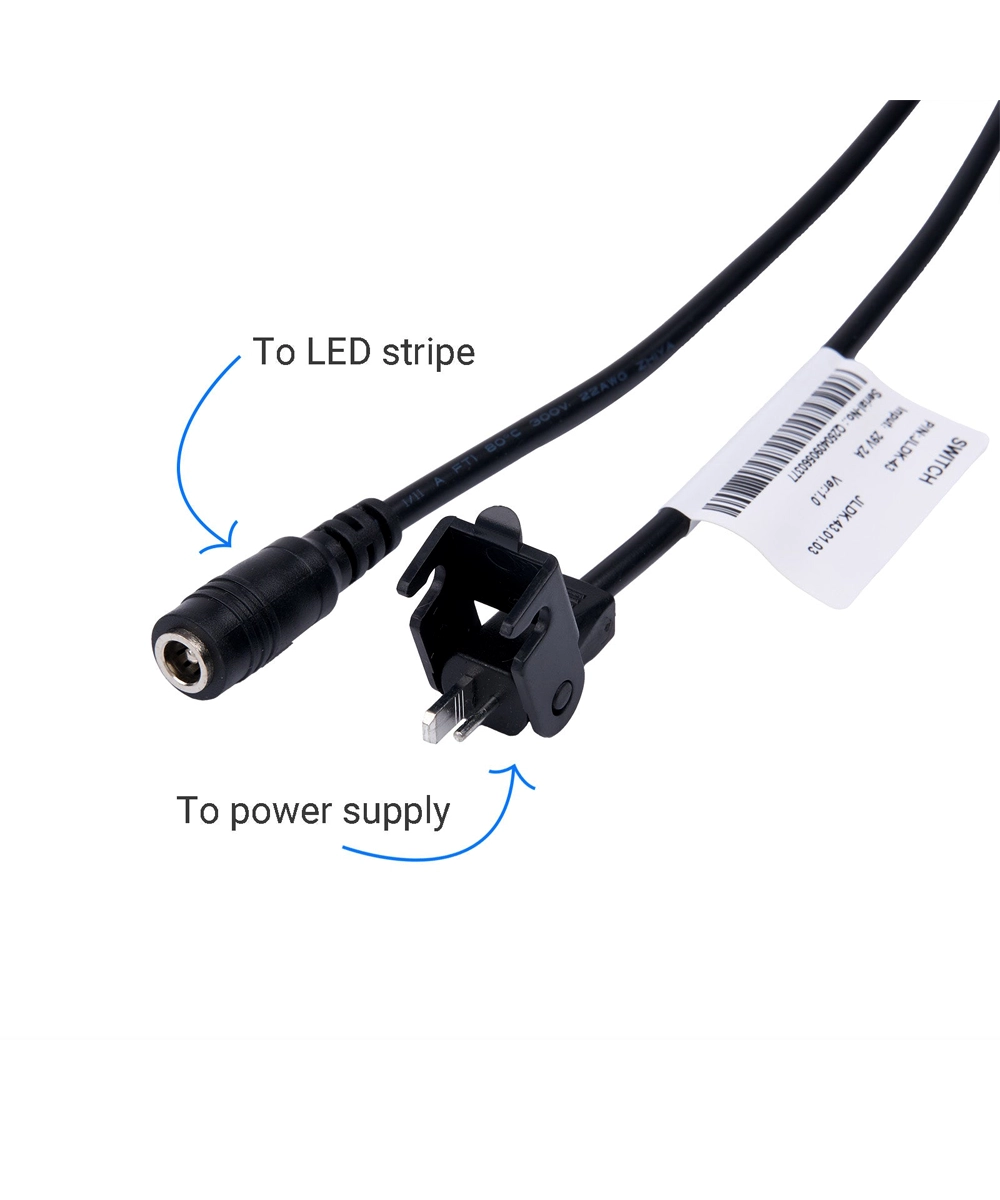 - Dual plug design: male 2‑pin plug for power supply, female barrel plug for LED strip
